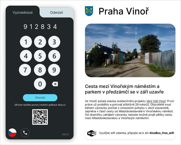 Na displejích AlzaBoxů mohou zástupci vedení měst a obcí zveřejňovat důležité informace pro veřejnost – například upozornění na kulturní akce, změny v dopravě nebo krizové zprávy. Obyvatelé městských částí Prahy zároveň získají možnost rychlého připojení k internetu na veřejných prostranstvích díky nově zpřístupněné bezplatné Wi-Fi.